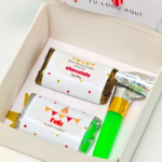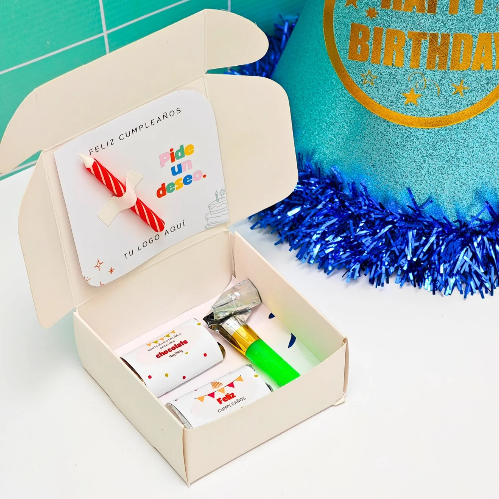 ✨Caja Blanca con moño ✨2 Chocolates marca hershey con etiqueta de mensaje ✨ Cerbatana ( silbato de papel ) ✨Tarjeta