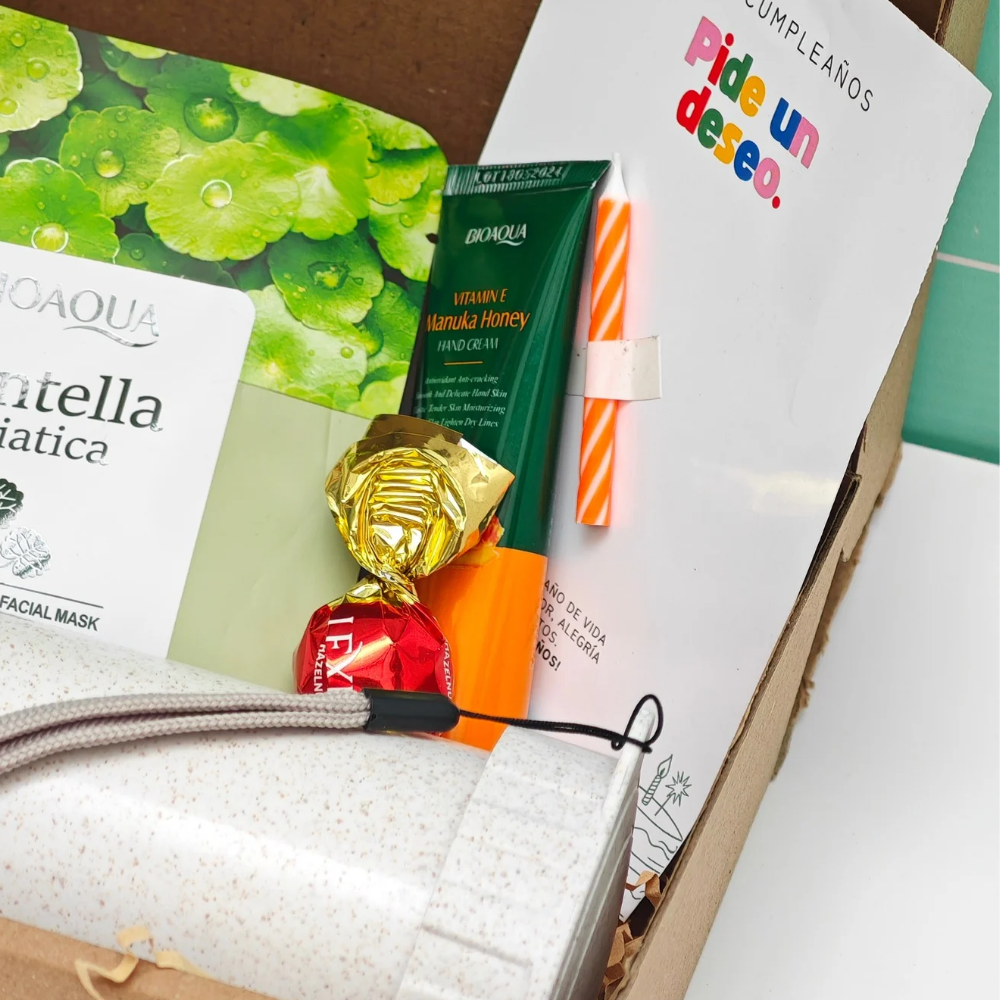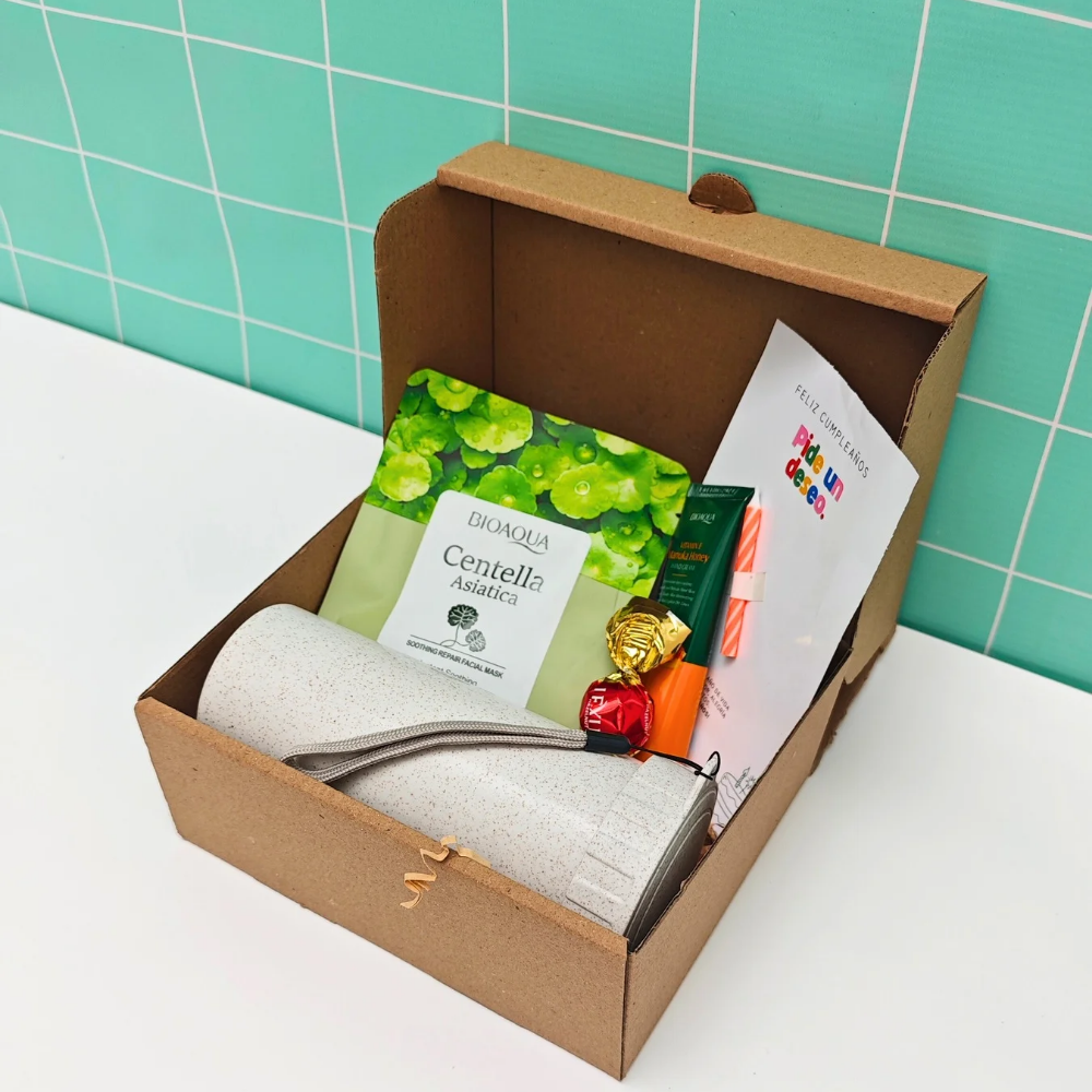 ✨Caja Kraft✨Vaso ecológico personalizado ✨Mascarilla facial ✨Crema de manos ✨Bombón de chocolate ✨Tarjeta