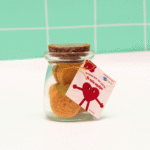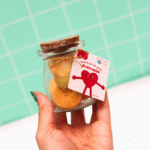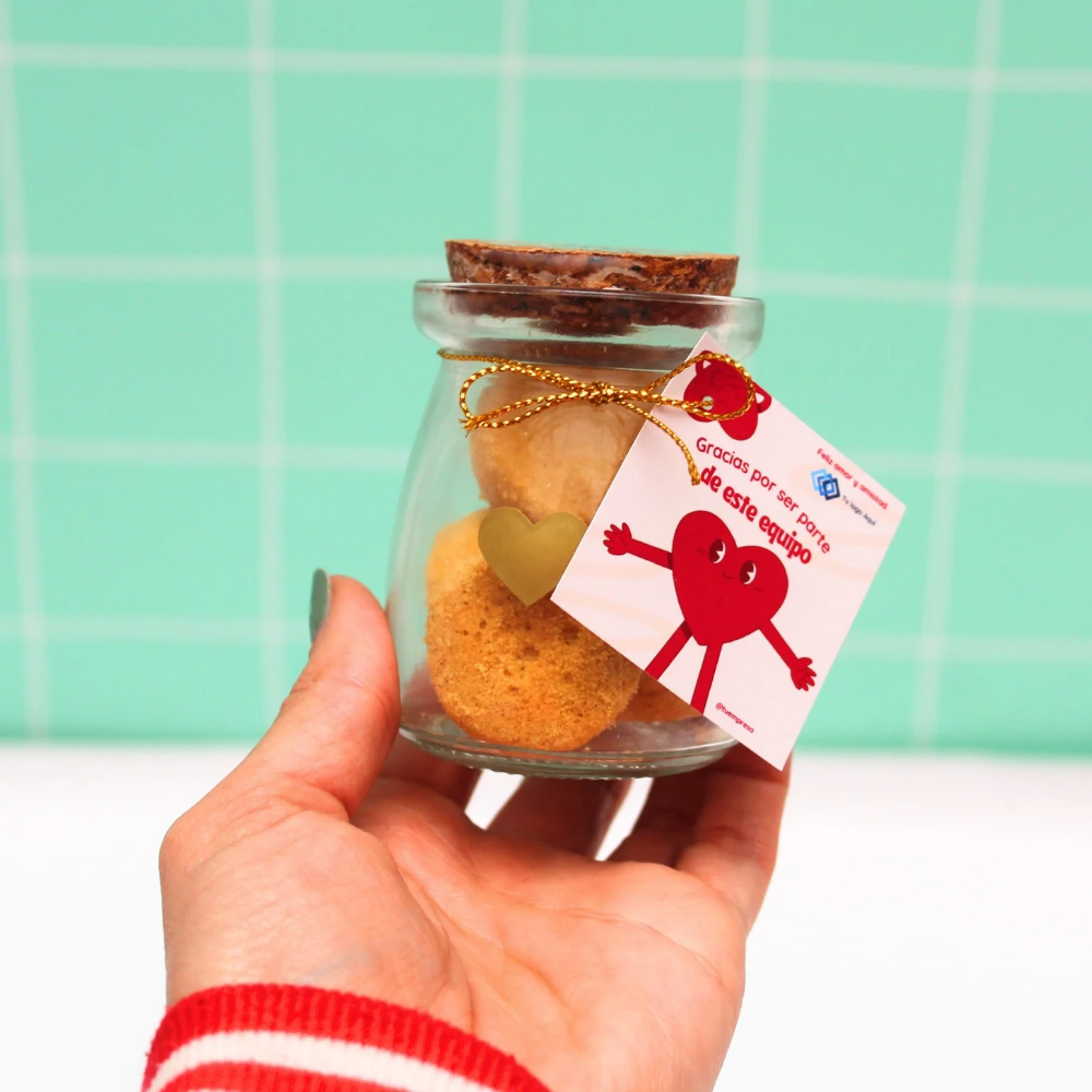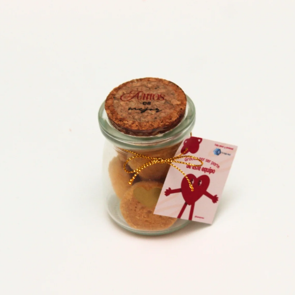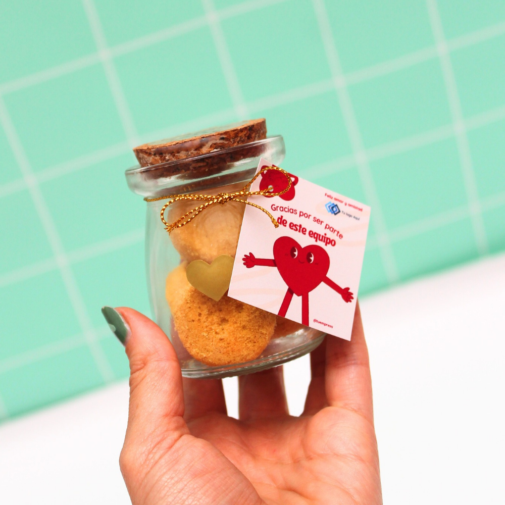 ✨Recipiente de vidrio con galletas de vainilla ✨Tarjeta con logo